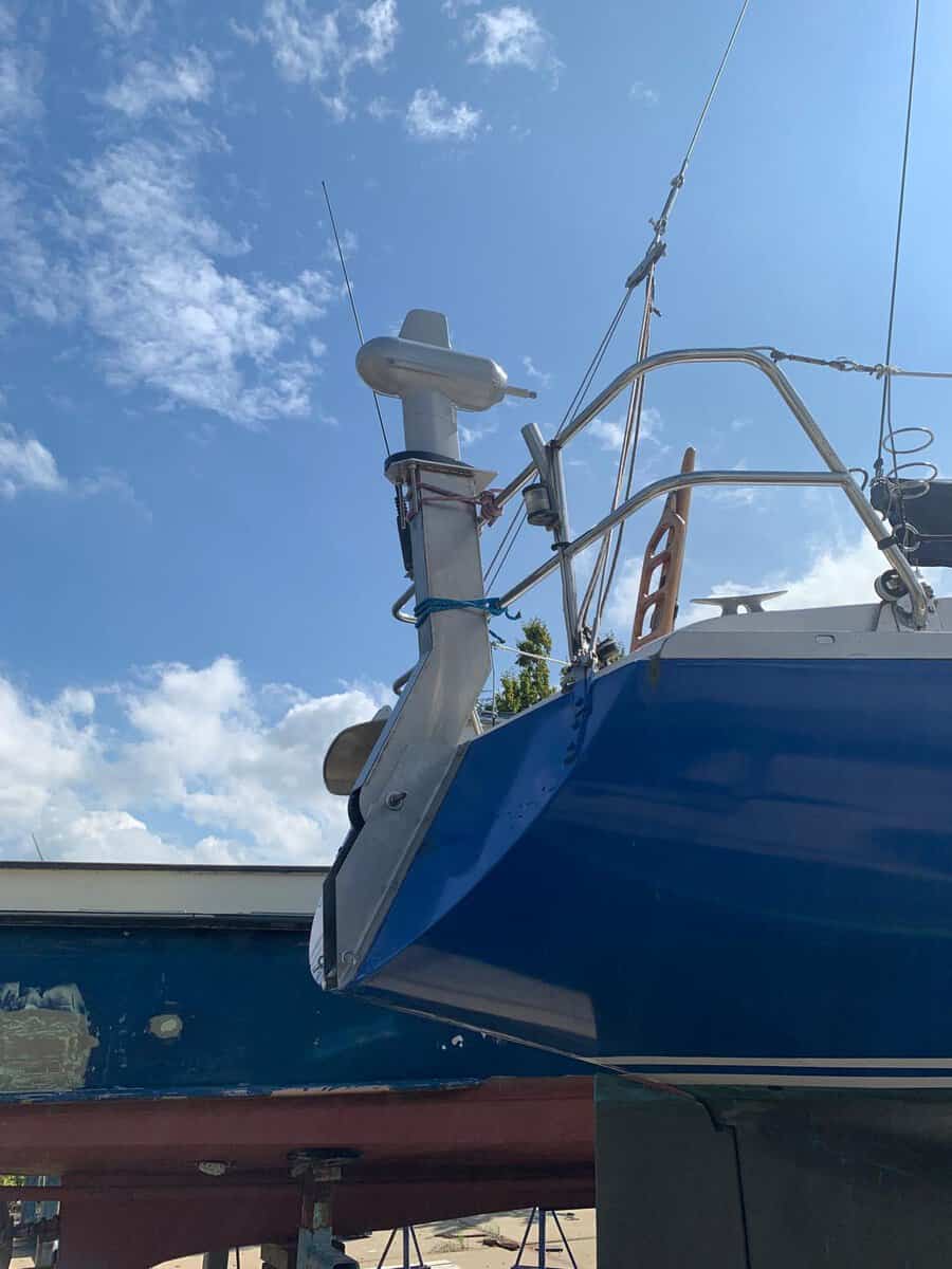 This means that a folding propeller is no longer necessary, which means that full power is available both forward and reverse via the supplied 3-blade propeller, while under sail there is no resistance under the boat at all, as the engine is folded up against the pushpit.