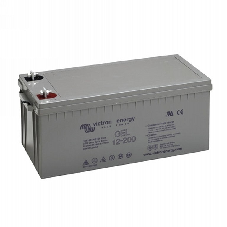 The Victron 12V/220Ah GEL battery is a closed battery with a capacity of 220Ah based on VRLA technology. A GEL battery is especially suitable for slow discharge, for system voltage consumers, on-board equipment and LED lighting. The battery connections are made of copper with holes for M6 bolts to ensure good contact. Press cable eyes can be mounted directly on the battery, and battery terminals are not necessary. The batteries meet both European CE and US UL specifications in fire-resistant ABS housings, and come with Victron Energy's global 2-year warranty. Closed (VRLA) Gel batteries With a Gel battery, the electrolyte is immobilized as a gel. Compared to AGM batteries, Gel batteries are more suitable for supplying low current for a longer period of time and this battery type generally has a longer lifespan, both in 'float' and 'cycling' use. VRLA technology VRLA stands for Valve Regulated Lead Acid. This means that the batteries are closed. Gas will only escape through a safety valve as a result of incorrect charging and/or broken cells. VRLA batteries are maintenance-free during their entire lifespan. Low self-discharge Due to the use of lead-calcium grids and very pure materials, Victron VRLA batteries can effortlessly handle long periods without charging. The self-discharge is less than 2% per month at a temperature of 20°C. This discharge rate doubles with every temperature increase of 10°C. Victron VRLA batteries can therefore be stored for up to a year without having to be recharged; provided this is done at a relatively low temperature. Exceptional discharge recovery Victron VRLA batteries recover very well, even after deep and prolonged discharges. Nevertheless, repeated deep and prolonged discharge negatively affects the service life of all lead-acid batteries. Victron batteries are no exception to this. Battery discharge characteristics The nominal capacity of Victron 'Deep Cycle' batteries refers to a discharge of 20 hours (a discharge current of 0.05C). The nominal capacity of Victron Tubular Plate Long Life batteries refers to a discharge of 10 hours. The effective capacity decreases as the discharge current increases. Charging current The charging current of a VRLA battery may not exceed 0.2C (20A for a 100 Ah battery). The temperature of a battery will increase by more than 10°C if the charging current exceeds 0.2C and then temperature compensation is necessary.