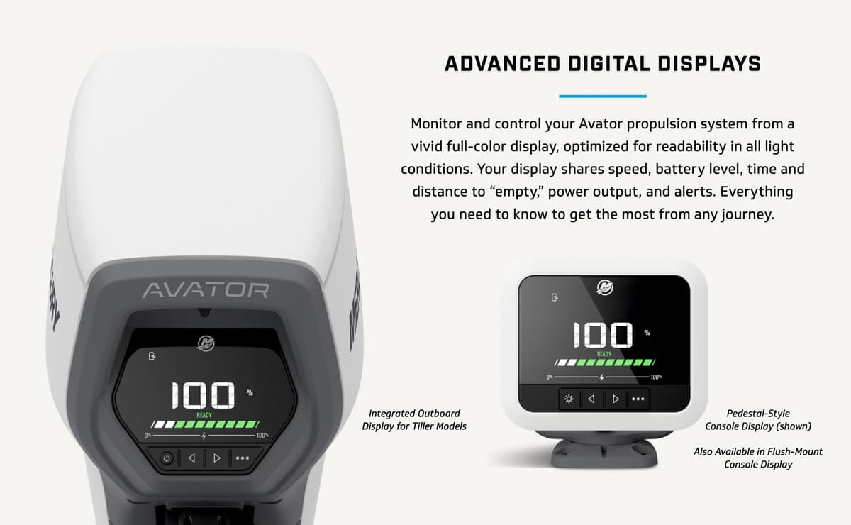 De Mercury Avator™ 7.5e elektrische buitenboordmotor levert prestaties vergelijkbaar met een 3.5 pk verbrandingsmotor en is ideaal voor kleine boten, tenders en als hulpmotor voor zeilboten. Dankzij de innovatieve technologieën en eenvoudige bediening biedt de Avator 7.5e een betrouwbare, efficiënte en stille vaarervaring geschikt voor meerdere type boten