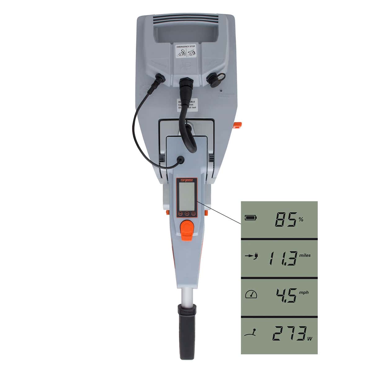 Op het display zie je niet alleen de accu conditie, vermogen en resterende vaartijd, maar ook de GPS snelheid en actieradius. Via een optionele bluetooth zender en de gratis app kun je dat alles en de kaartpositie ook zien op je smartphone.
