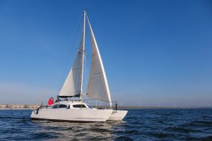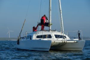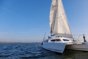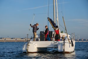We voeren zo stil de box uit dat de cameraman, die zich in de box ernaast aan het installeren was in onze dinghy, het niet eens in de gaten had en zich ineens af vroeg waar wij en die catamaran ineens gebleven waren. Vrij snel kwam hij achter ons aan en de eerste woorden die we hem hoorden zeggen waren “ik koop dus nooit meer een brandstofmotor, wat een geweldig ding is dit” terwijl hij niet uitgesproken raakte over onze ePropulsion Spirit 1.0 Plus motor. Dat is dus wat elektrisch varen met je doet en wat we graag iedereen willen laten ervaren.